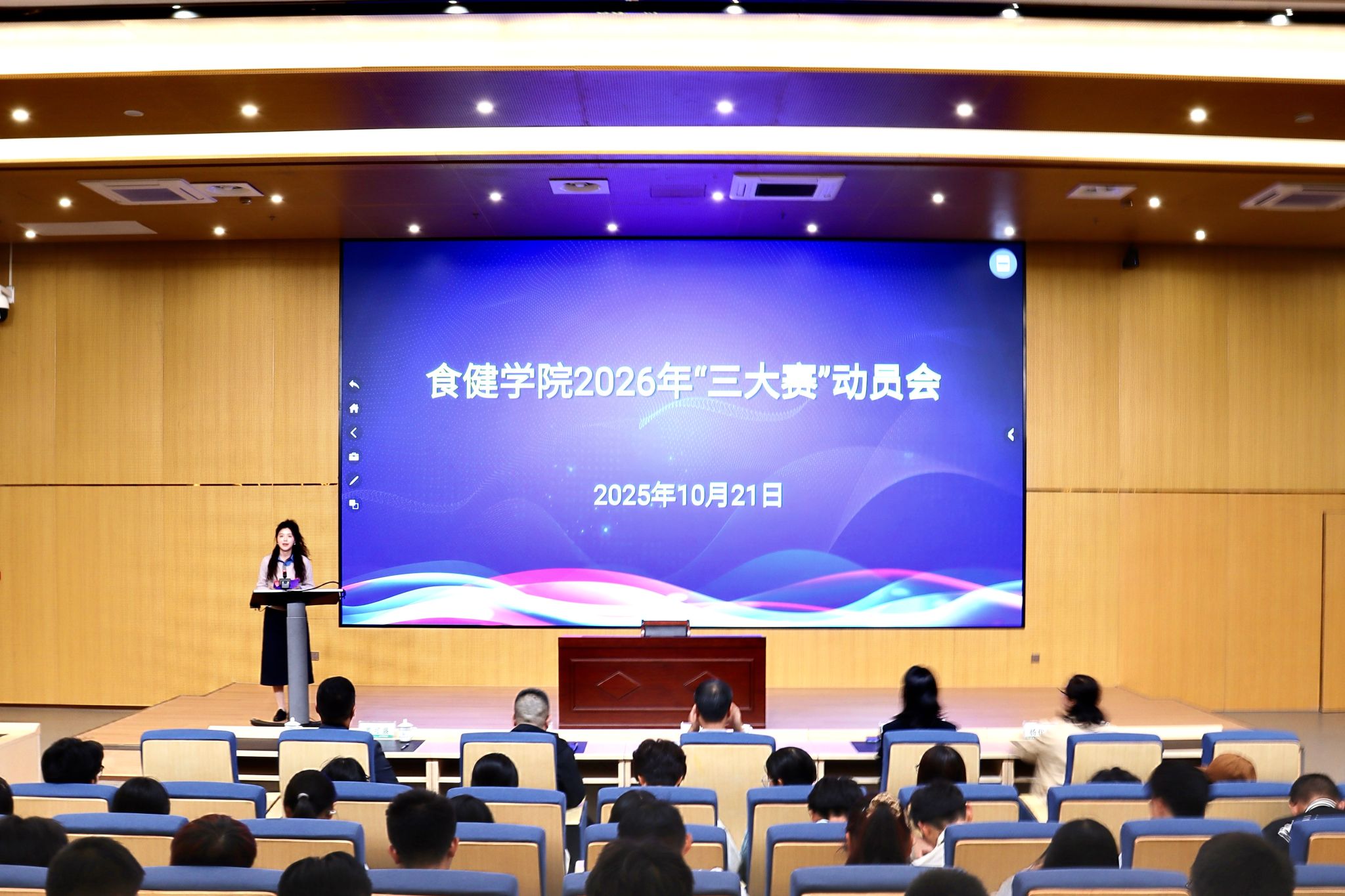 为激发学生创新创业热情,明晰职业发展方向,系统提升学科竞赛能力,10月21日晚,食健学院在新农科交叉中心报告厅举行2026年“三大赛”动员会。此次动员会邀请集贤学院王康老师、园林学院陈丹秀老师与食健学院杨优优老师担任主讲嘉宾,学院党委负责人、学生工作负责人、全体辅导员、2025级全体新生及各年级学生代表参加此次动员会。